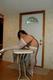 Брюнетка в возрасте с большой сочной попой вертится у гладильной доски, показывая все свои прелести