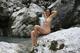 Очень даже соблазнительная мохнаточка на камушках расположилась!
