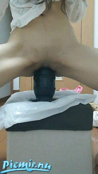 Молодая красивая, стройная девушка разрабатывает свои большие дырки