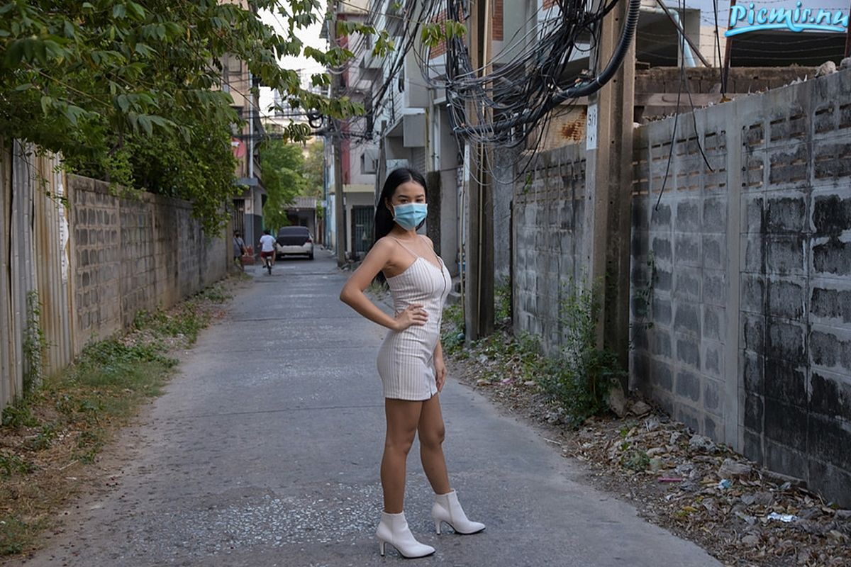 Девушка из Филиппин скрывает лицо маской пока делает обнаженные фотографии на улице и дома.