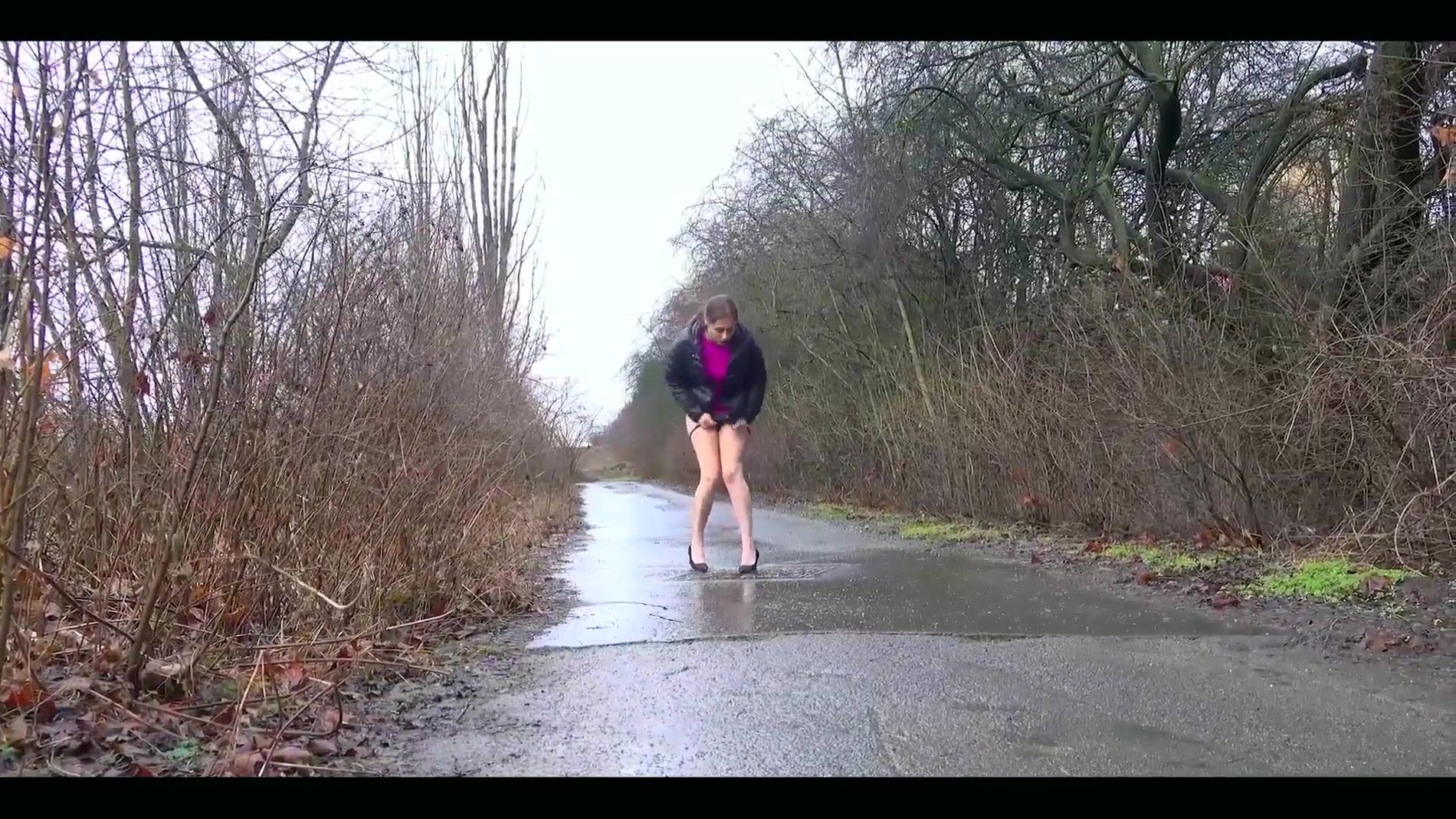 Фигуристая самочка на каблучках перебрала пивка и не удержалась - сделала смачную и эротичную струйку прямо посредине дороги! Картинный писс фигуристой девушки с крупным планом её бритой щелки. Всем - приятного просмотра!