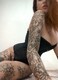 девочка с тату по всему телу. и попе. и с плеткой. БДСМщица она
