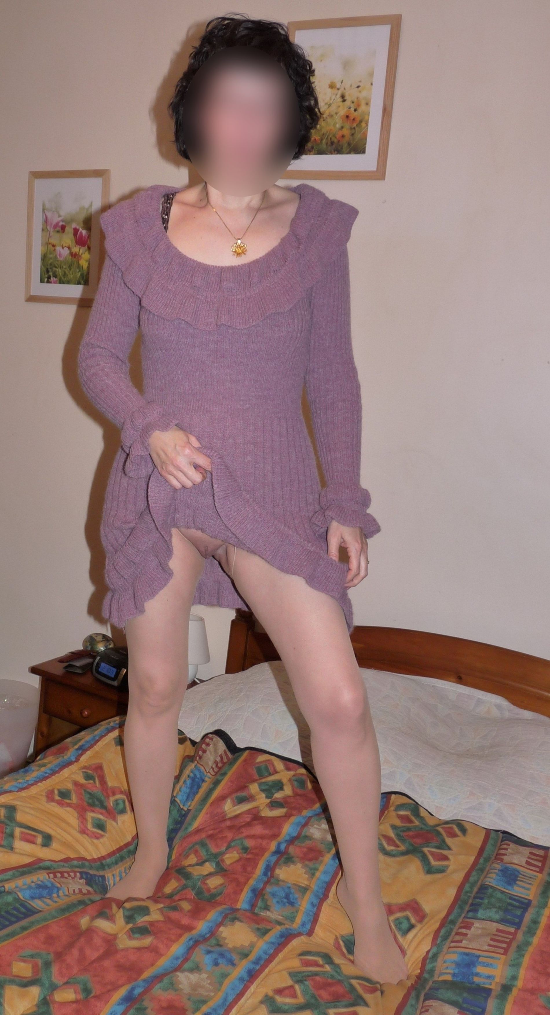 С удовольствием дамочка в вязанном платье продемонстрировала нам похотливую писю свою!