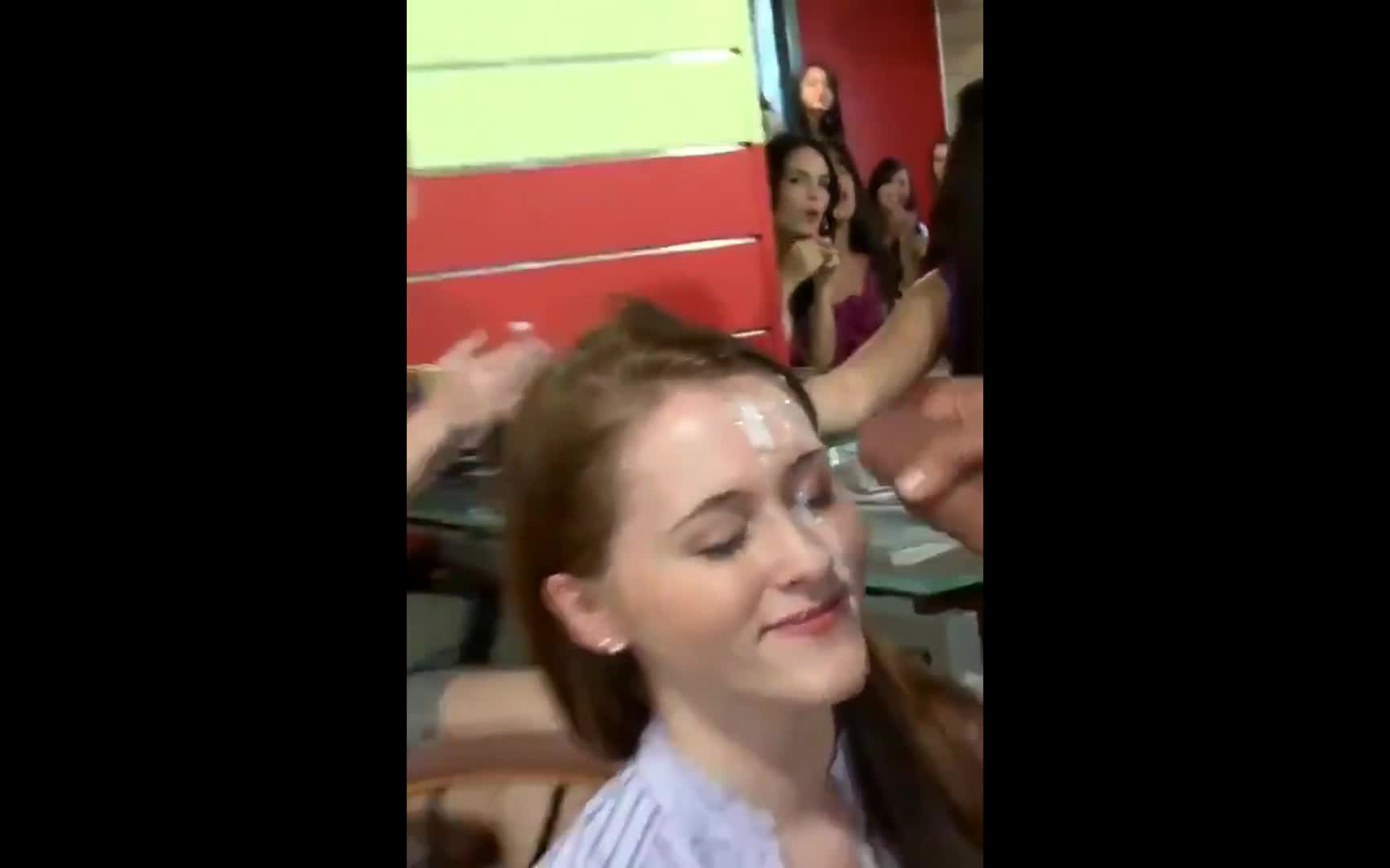 Подруги просто поразились, когда увидели как на лицо их пай-девочки при всех кончает мужчина.
