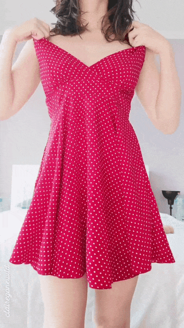 Какие в красном горошке платье.. У девы соски, торчки.