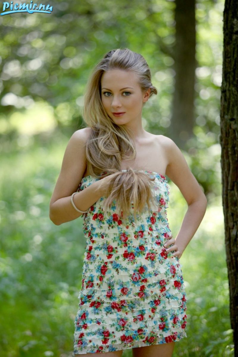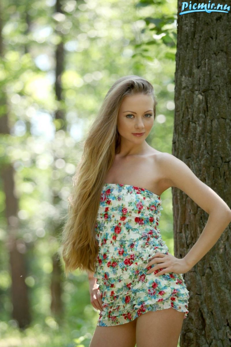 Красивая блондинка гуляя по лесочку решила раздеться и порадовать прохожих