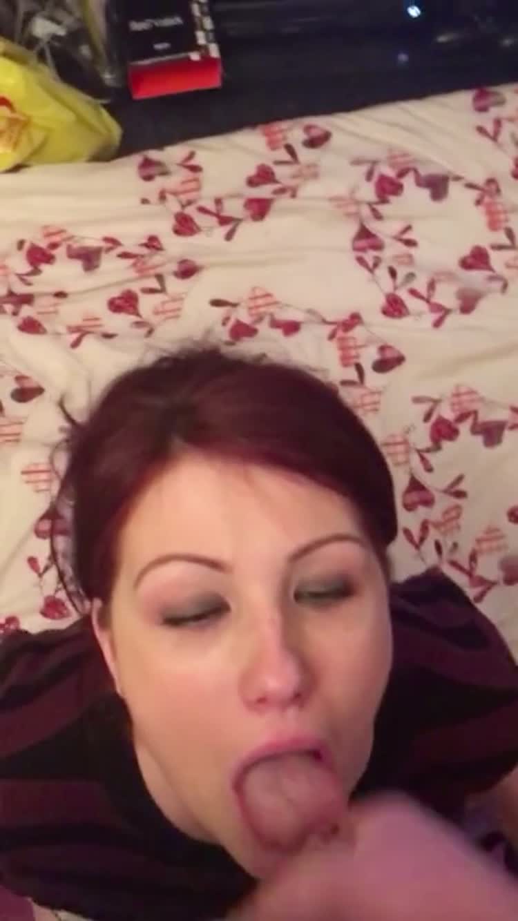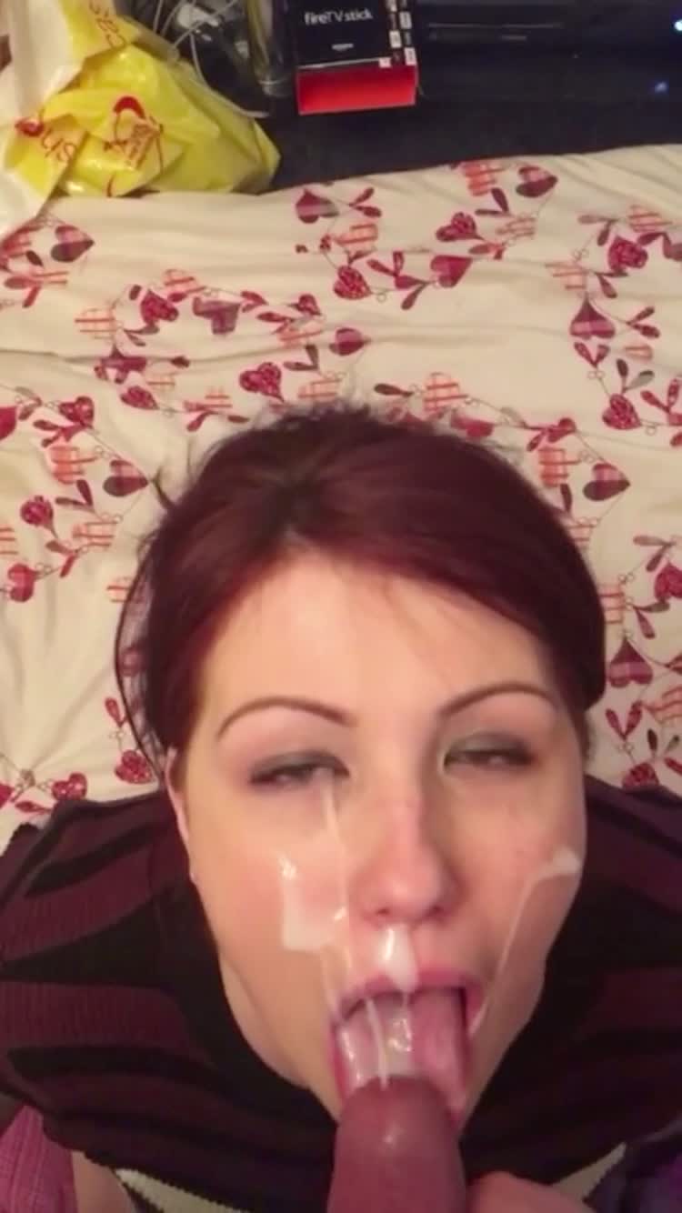 Дамочка минетом доводит до оргазма и получает выстрелы спермы на лицо