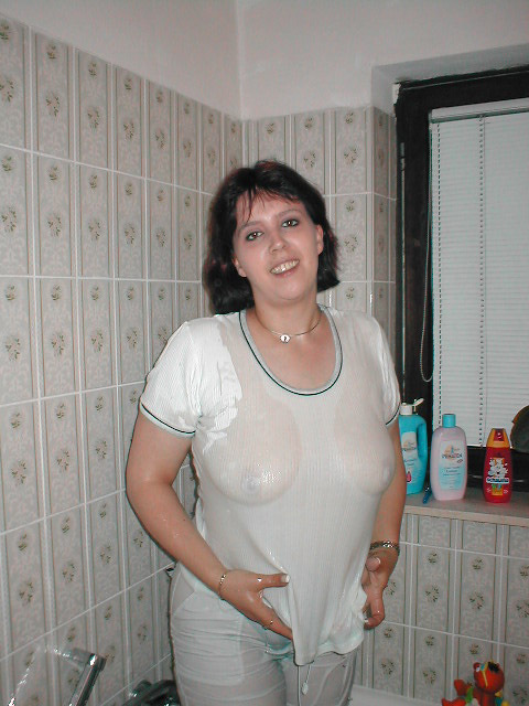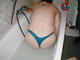 Взрослая дамочка решила принять ванну в одежде, постепенно раздеваясь осталась в одних стрингах.