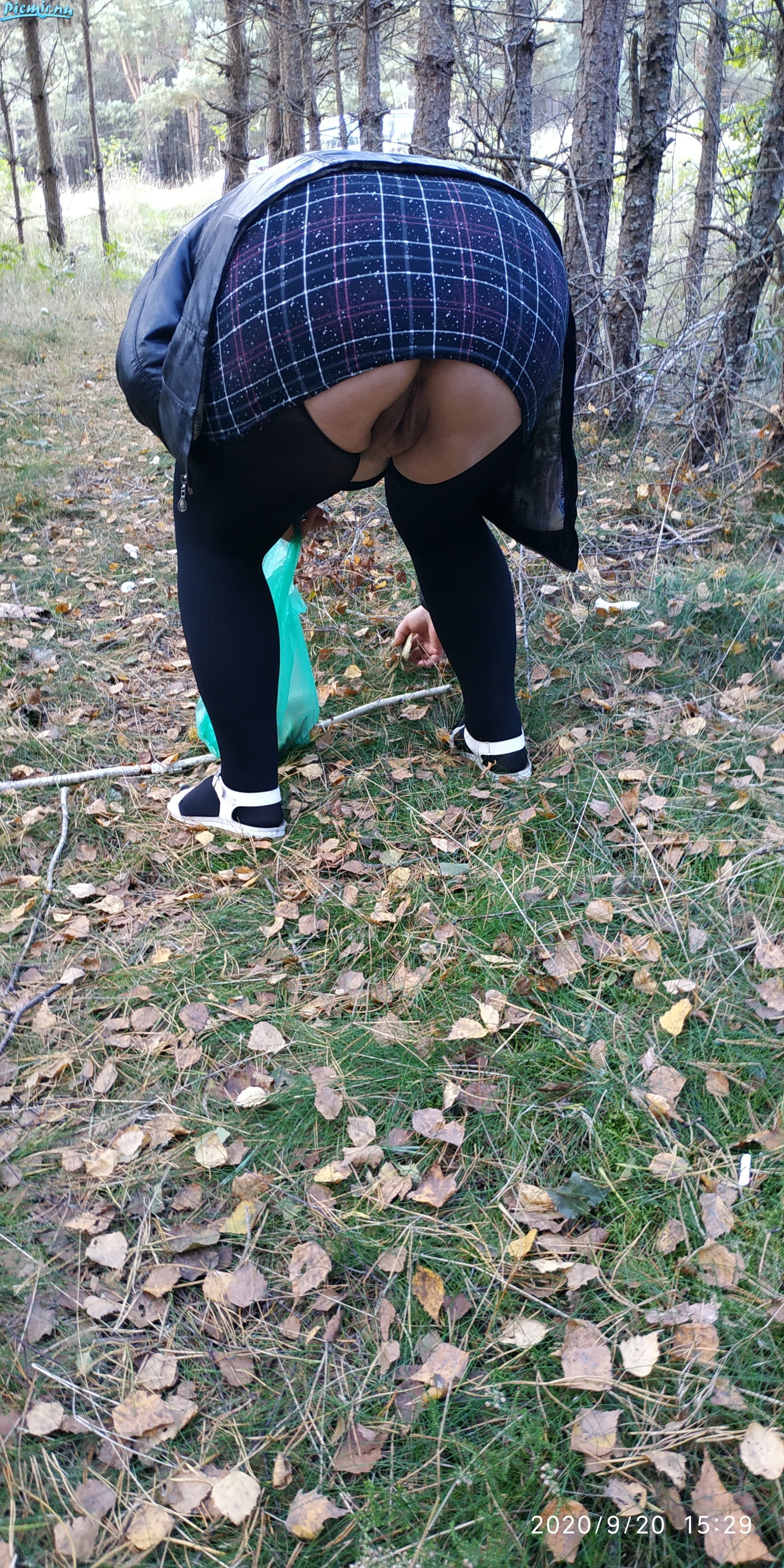 Сладкая пышечка в лесу без трусиков соблазняет грибников