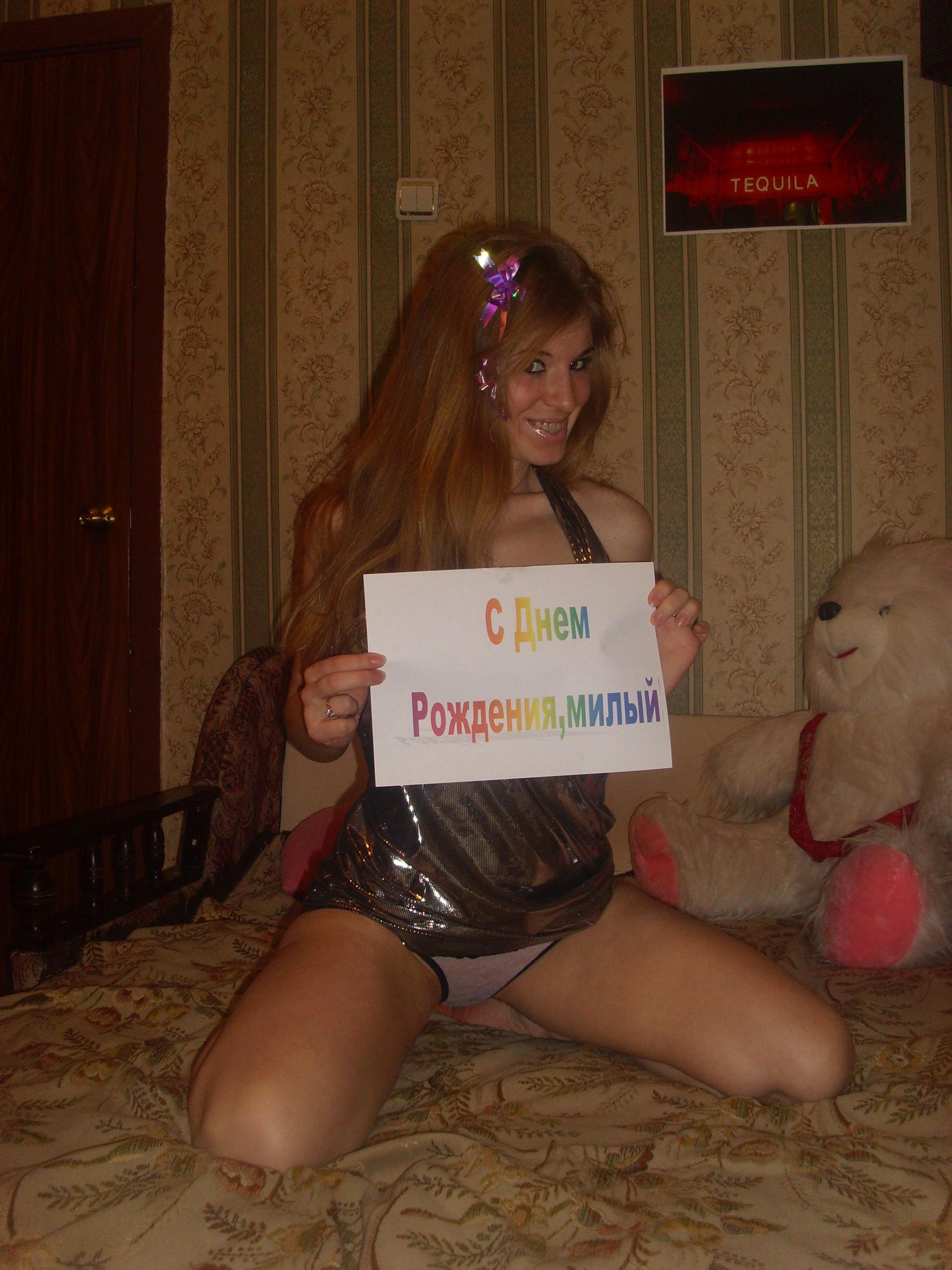 Стройная девочка нашла весьма милый способ поздравить своего любимого с ДР))