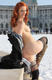 Красиво рыжая красотка открывает свое тело взору прохожих.