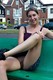 Француженка показывает свои прелести во время прогулки.