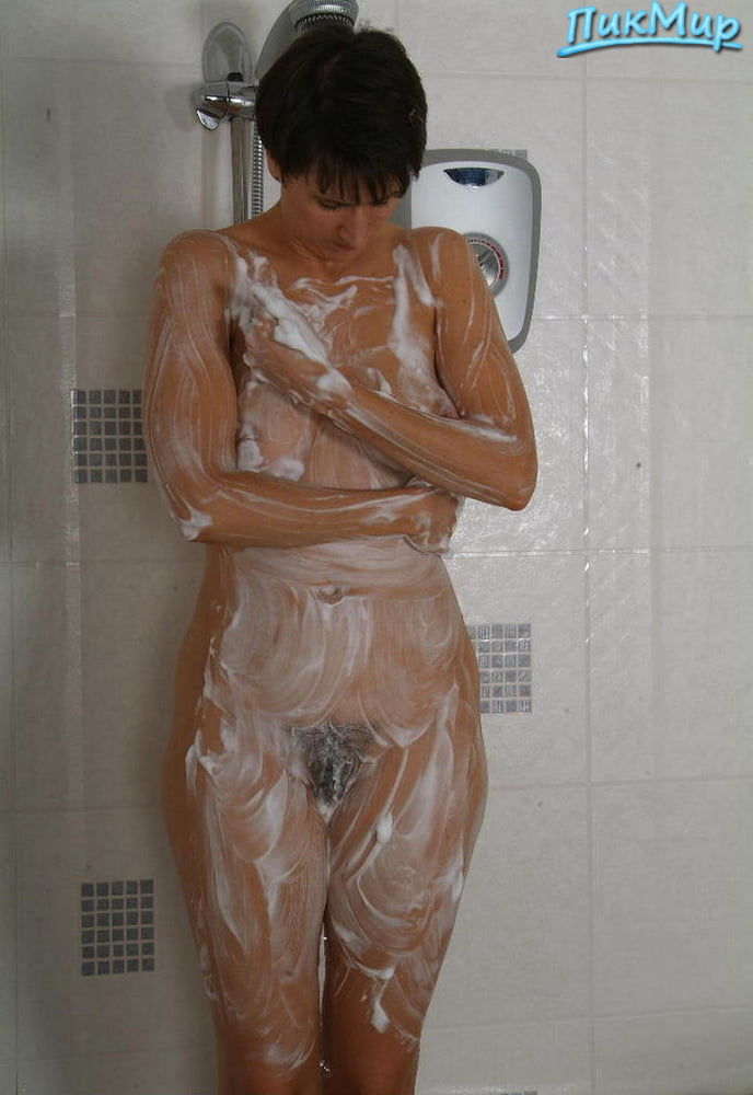 Женщина принимает душ , намывает своё тело , готовясь к жаркому сексу