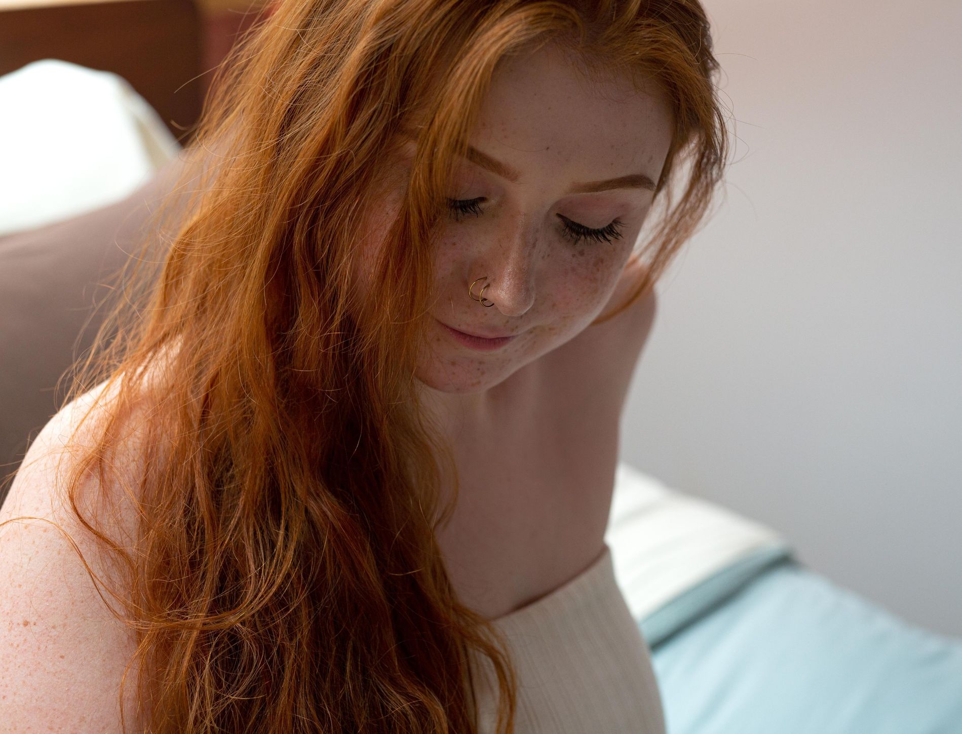 Более откровенные фото рыжика плюс веснушки крупным планом на лице.
