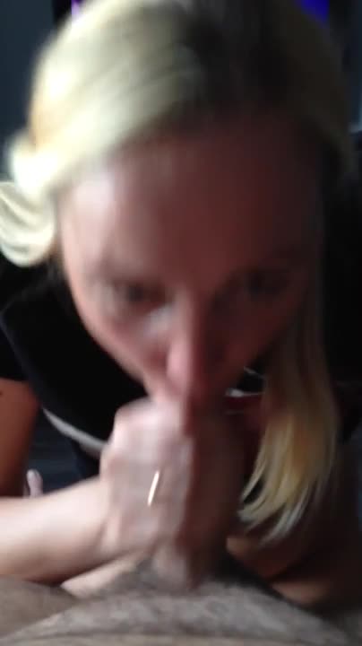 Жена блондинка сосет член мужу и получает сперму в рот.