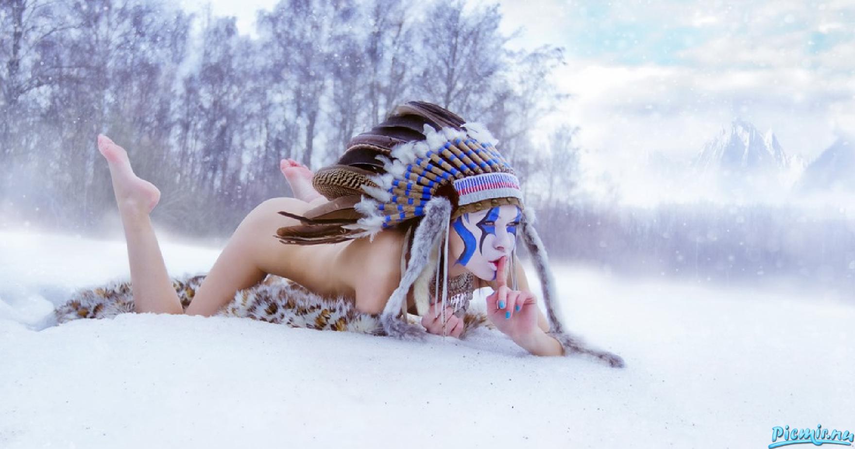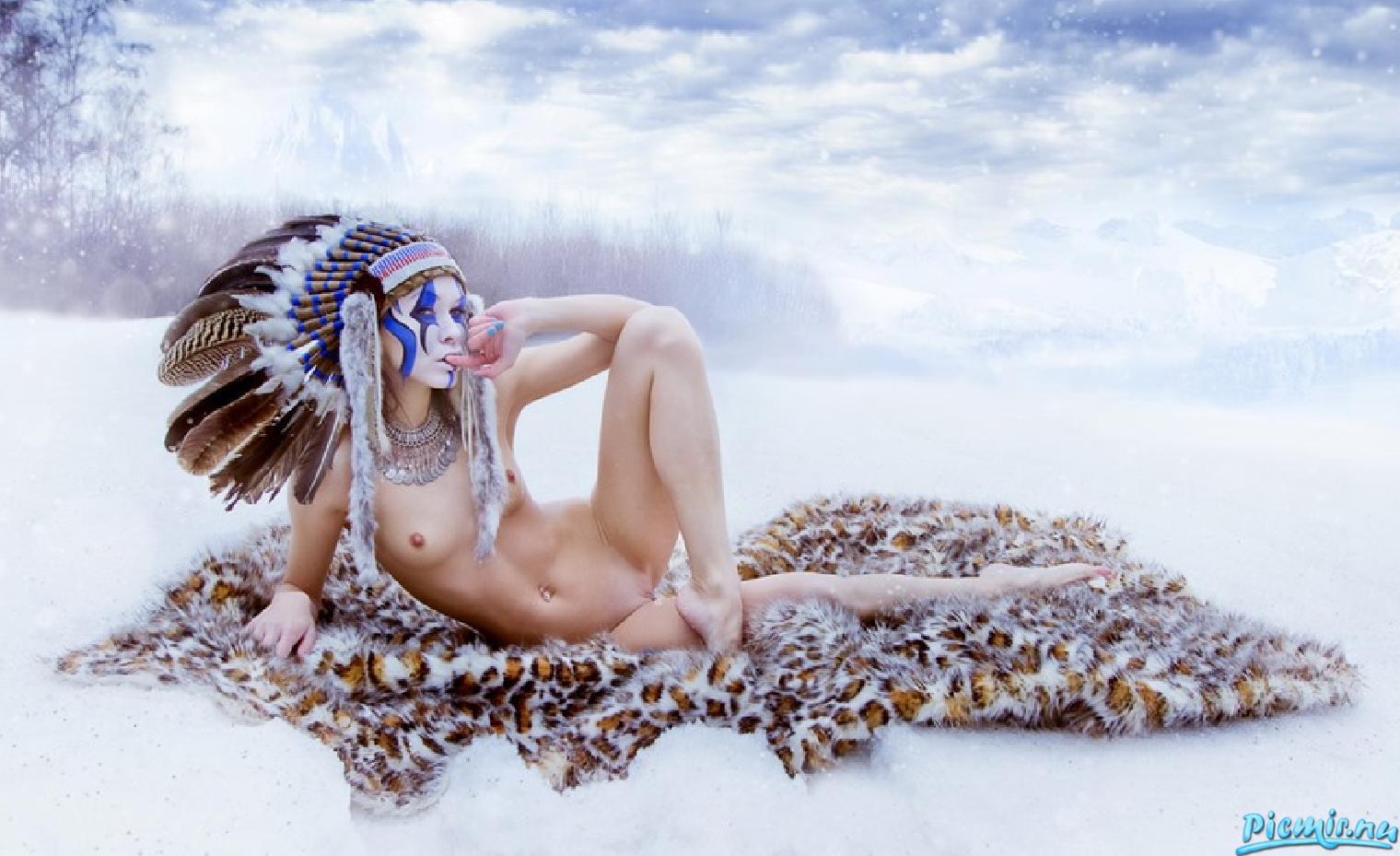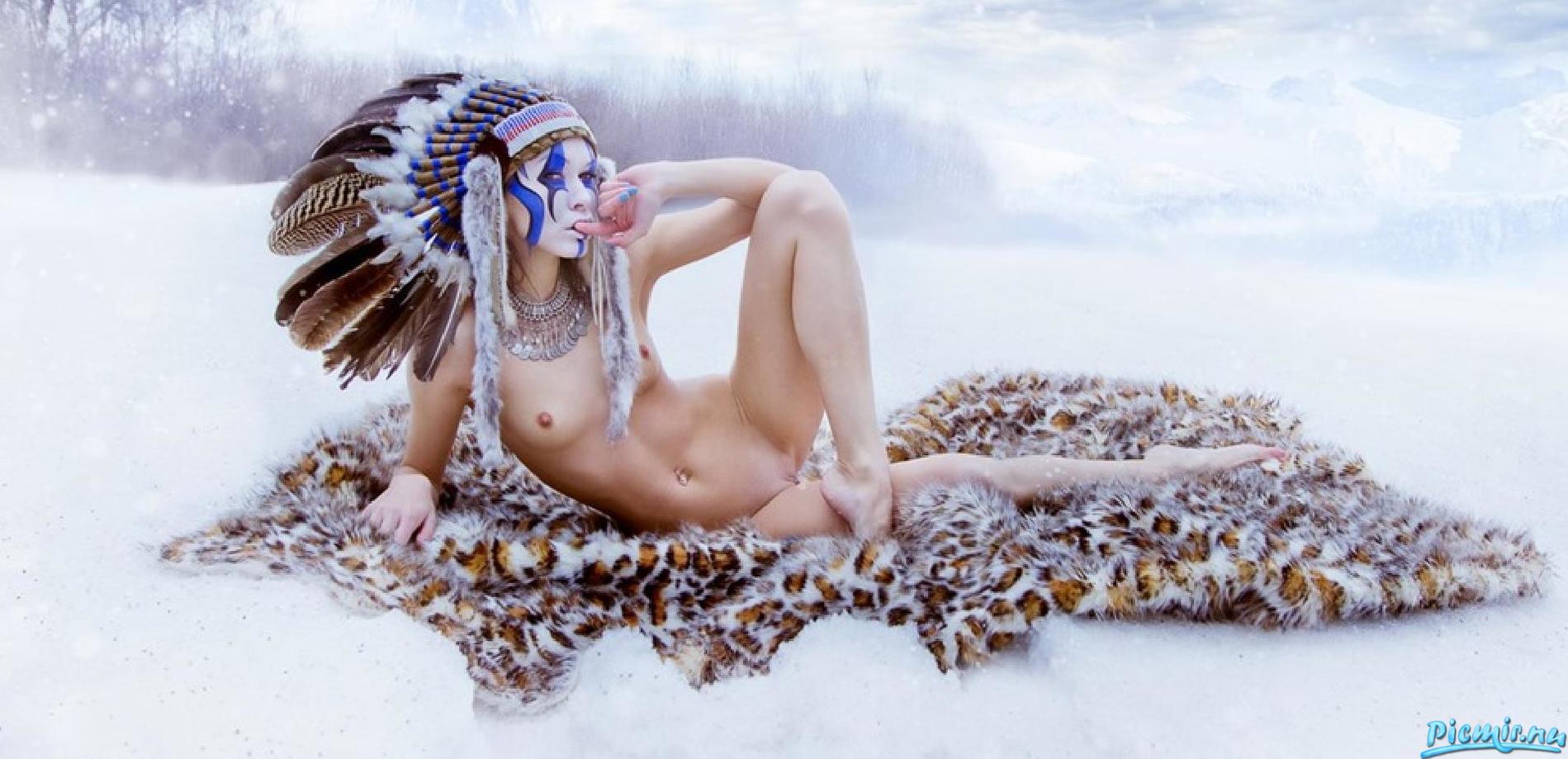 Хорошо хоть жопка на шкуре у милашки. Не замерзнет вроде