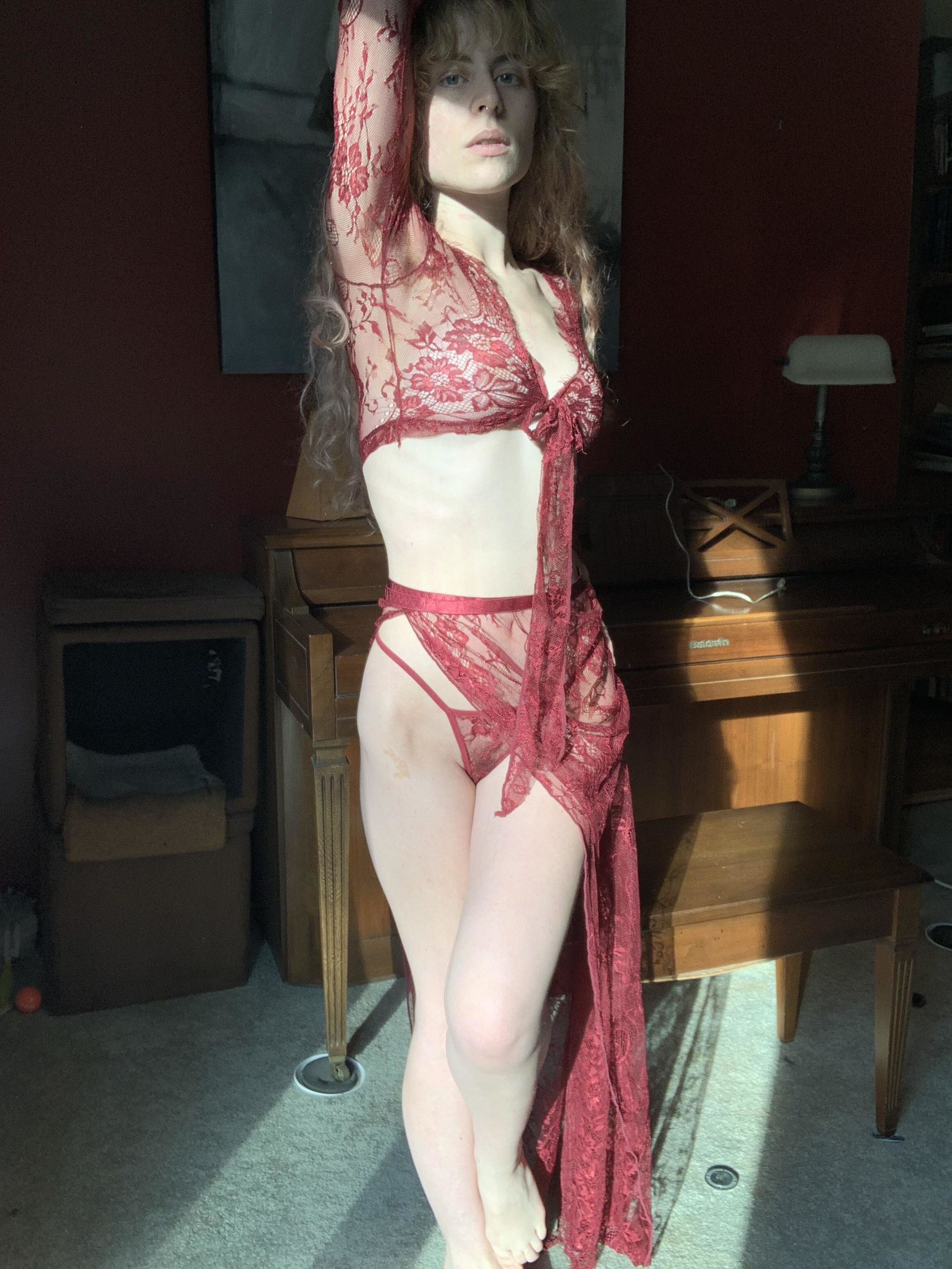 Очарован и её пиздёнкой и её кружевным эро нарядом!