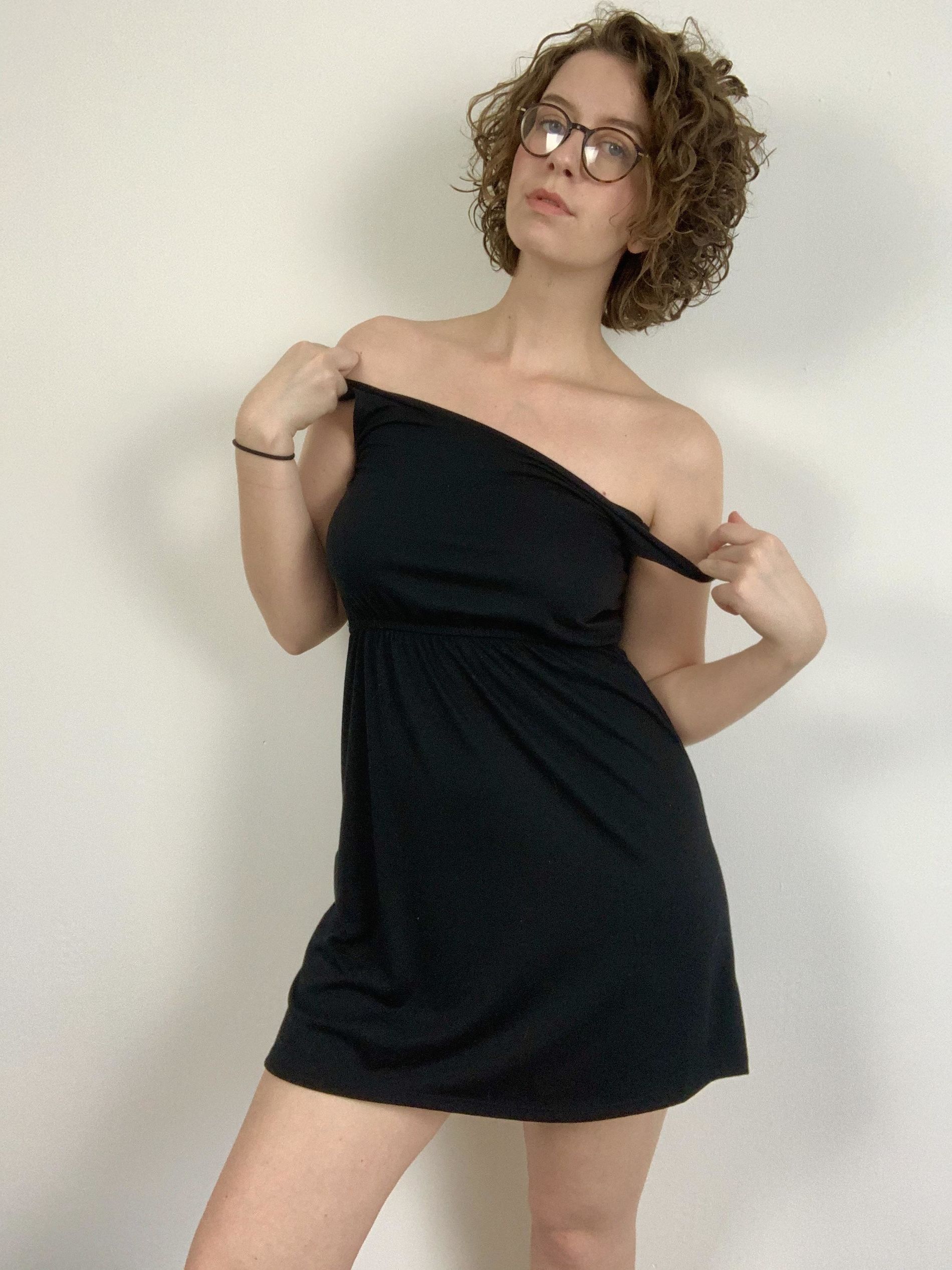 прелестная кудрявая девушка демонстрирует свою красивую фигуру и своё сексуальное тело