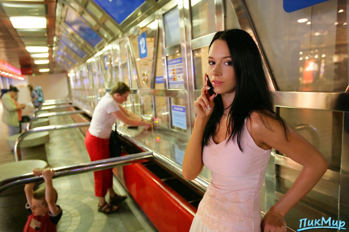 брюнеточка любит посветить в транспорте кисуней