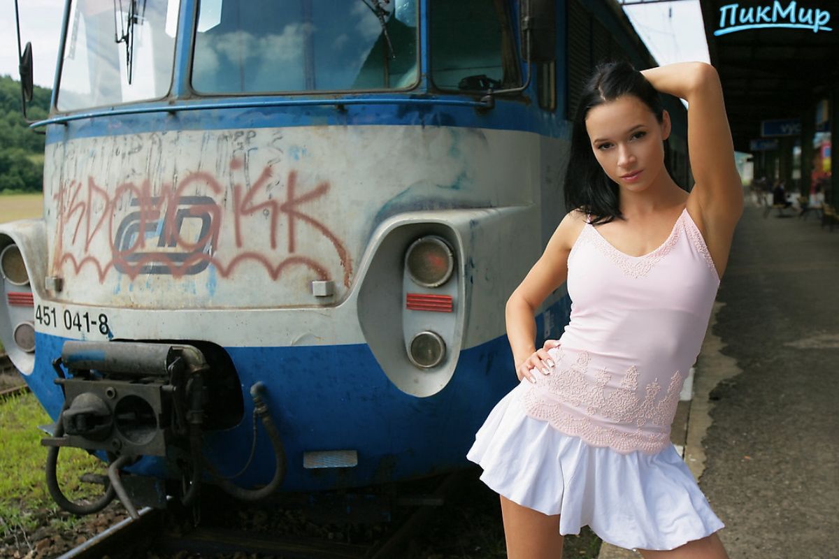 Красивая брюнетка показала пизду в пустом поезде