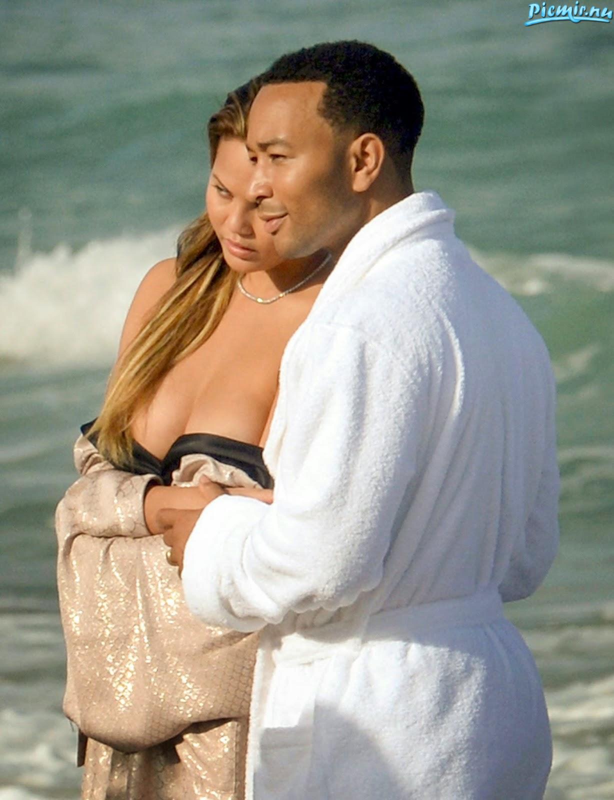 Джон Леджен, спокойно наблюдающий,как вокруг голой жены ходят другие мужики - известный певец, обладать оскара и множества грэмми. Крисси Тэйген агент заметил продащицей в серф-магазине,после чего она стала моделью и телеведущей