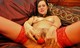 Женщина в возрасте в красном белье откровенно позирует перед фотографом выставляя напоказ свое стройное тело и небритую писечку!
