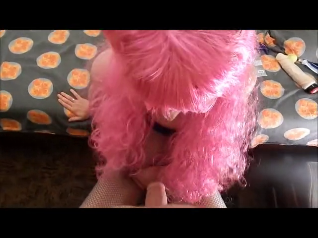 Уже знакомая девочка в парике Мальвины,садится милой попой на член