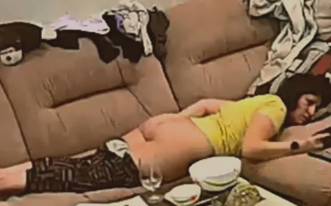 Дама тихонько, как бы между делом, под теледедектив подрачивает свою щелку.