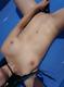 нежится на солнышке в надувном бассейне и ублажает свою писюлю