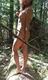 стройная голая девушка позирует в лесу демонстрируя свою привлекательную фигурку