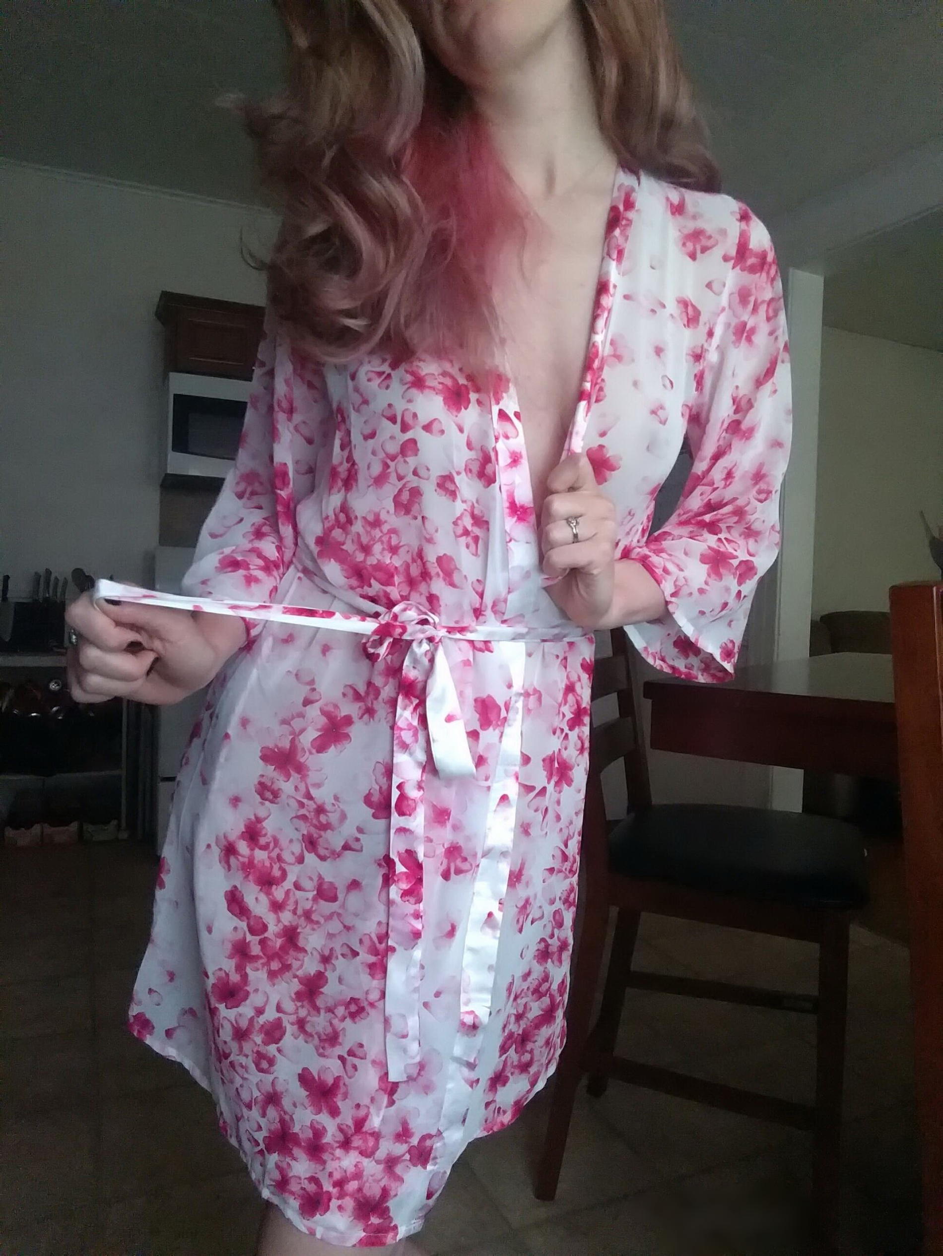 девушка скидывает с себя халатик обнажая своё сексуальное тело