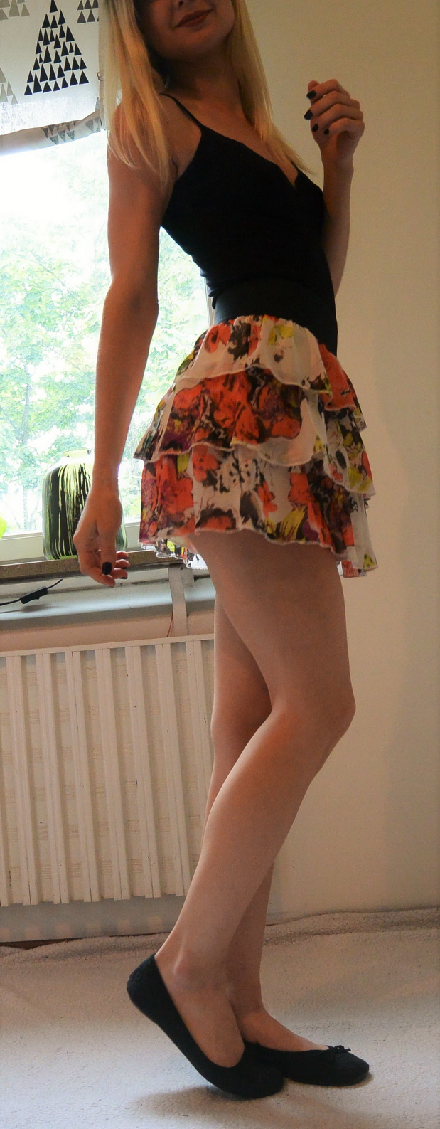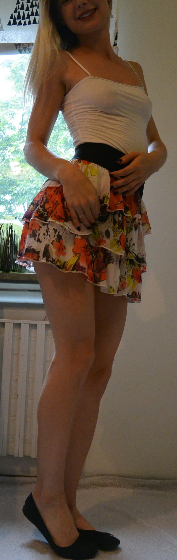 позирует в юбке кроя ламбада сверкая своими привлекательными прелестями