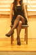 брюнетка позирует в тонких нейлоновых чулках и полупрозрачных трусиках