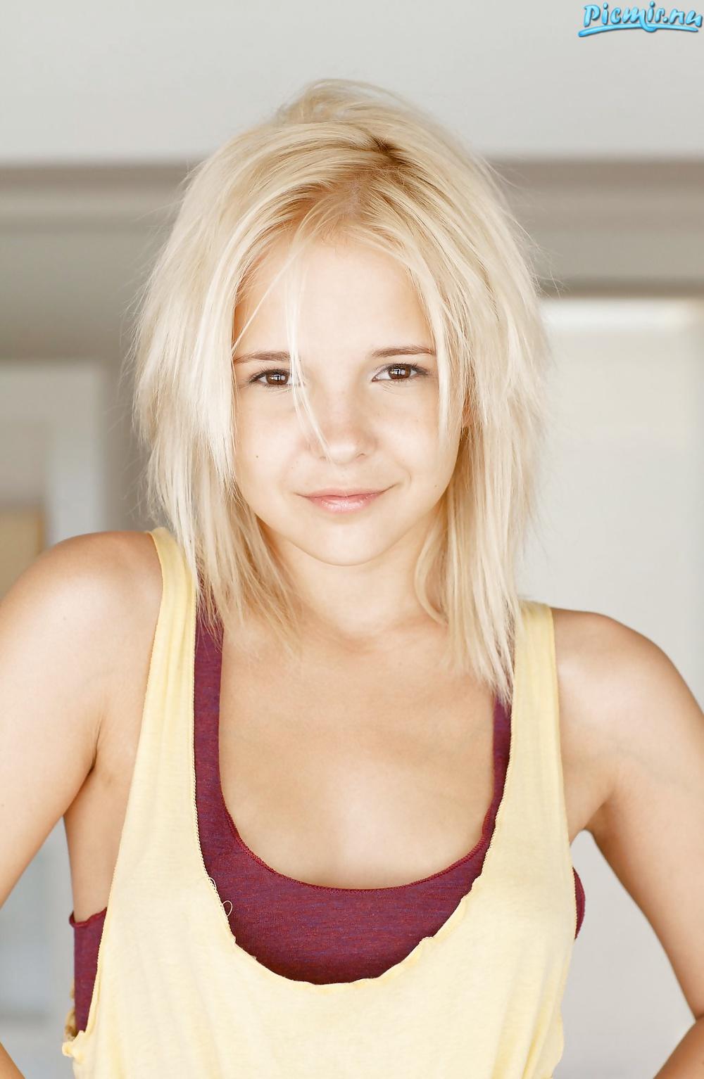 Блондиночка с симпатичной мордашкой продемонстрировала свои очаровательные прелести.