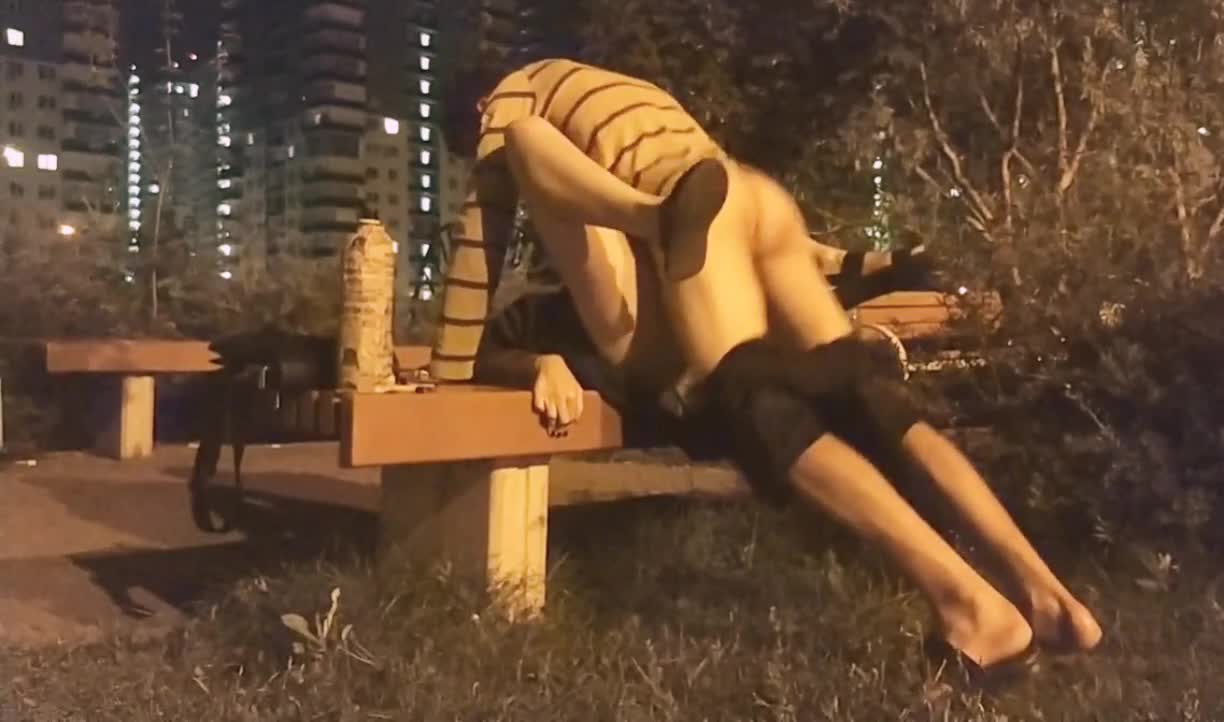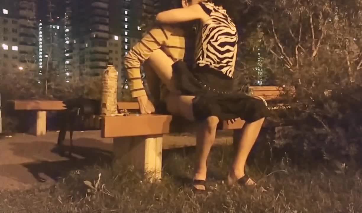 Развратная парочка переместилась с детской площадки на лавку и продолжают свои утехи.