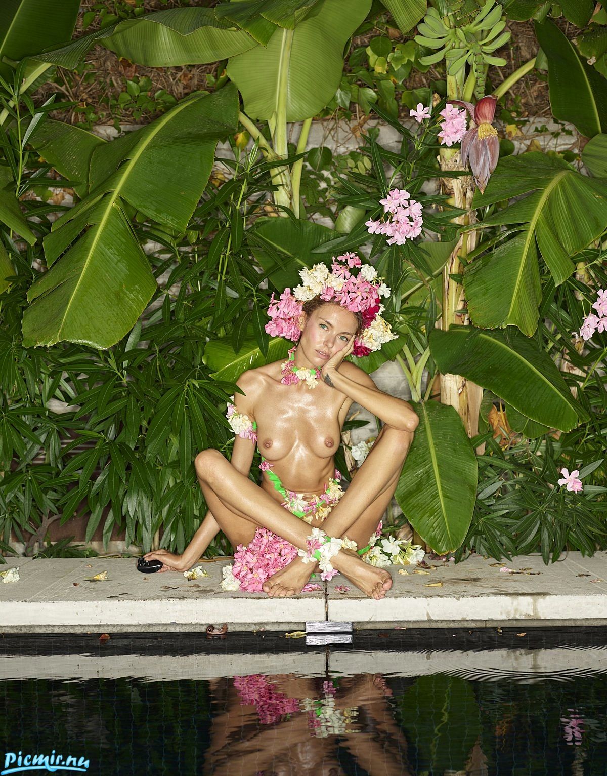 Красивая, обнаженная девушка в цветочном свадебном платье.