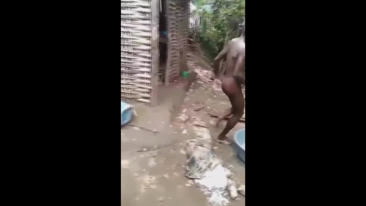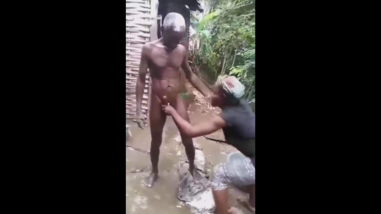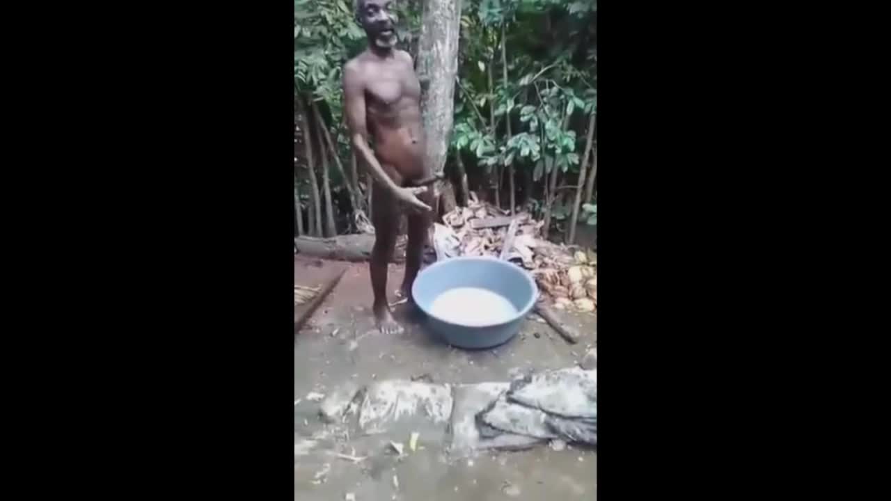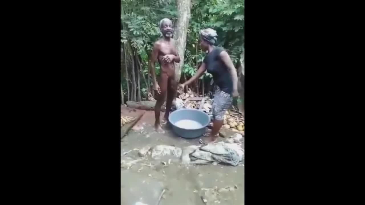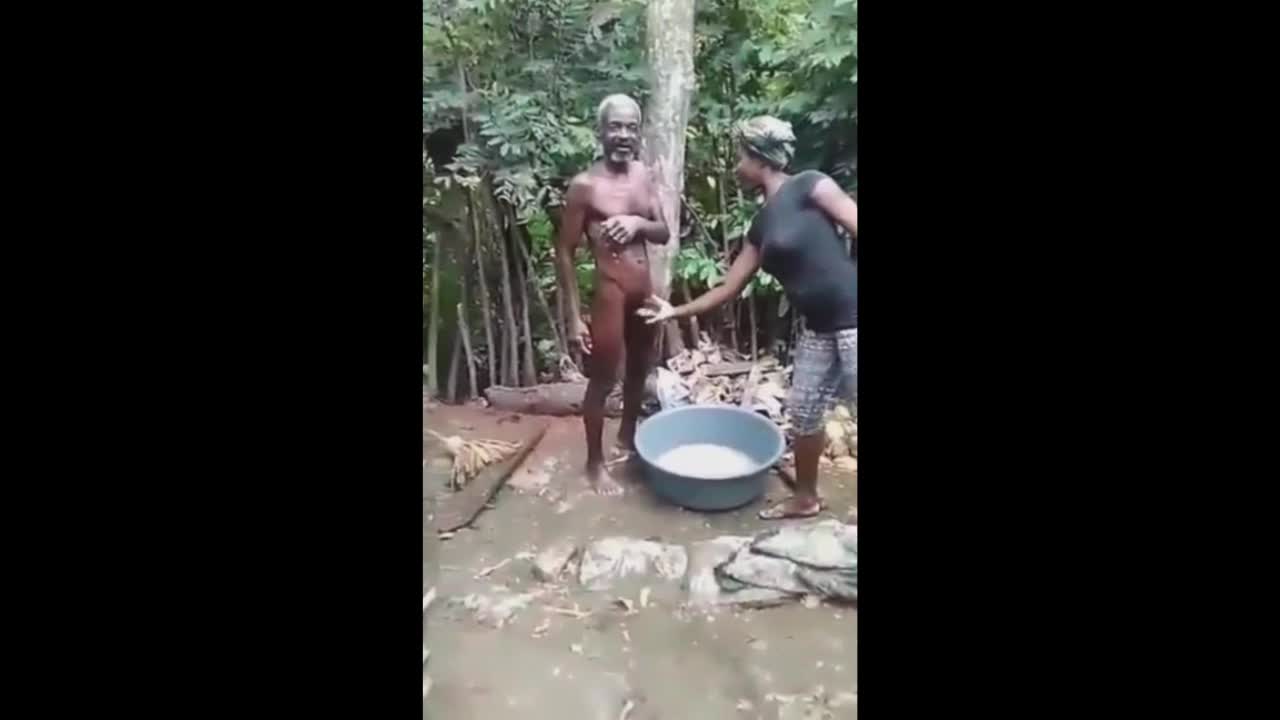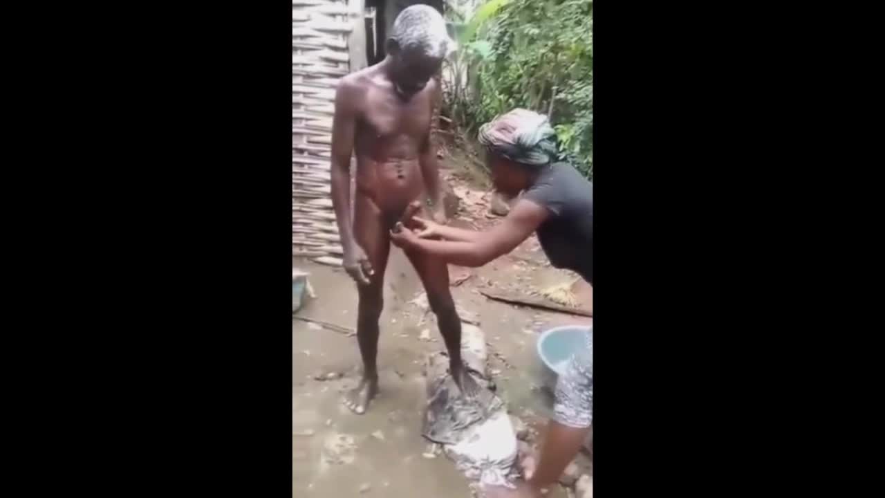 Две женщины играют с пенисом деда, пока он купается.