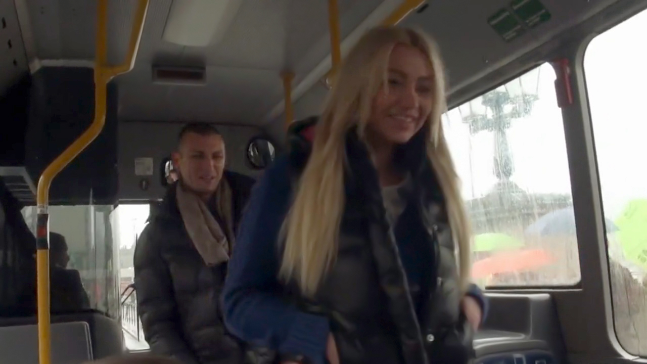 Молодой паре очень хотелось потрахаться и они не стали зря терять время и занялись сексом в автобусе,несмотря на публику,девушка сделала минет парню,а он полизал ей ее сладкую киску,хорошенько трахнул красивую девушку и кончил ей в ротик.