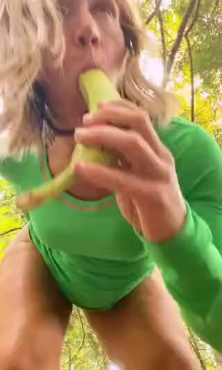Девка пришла в парк и промассировала бананами свои дырочки на камеру.