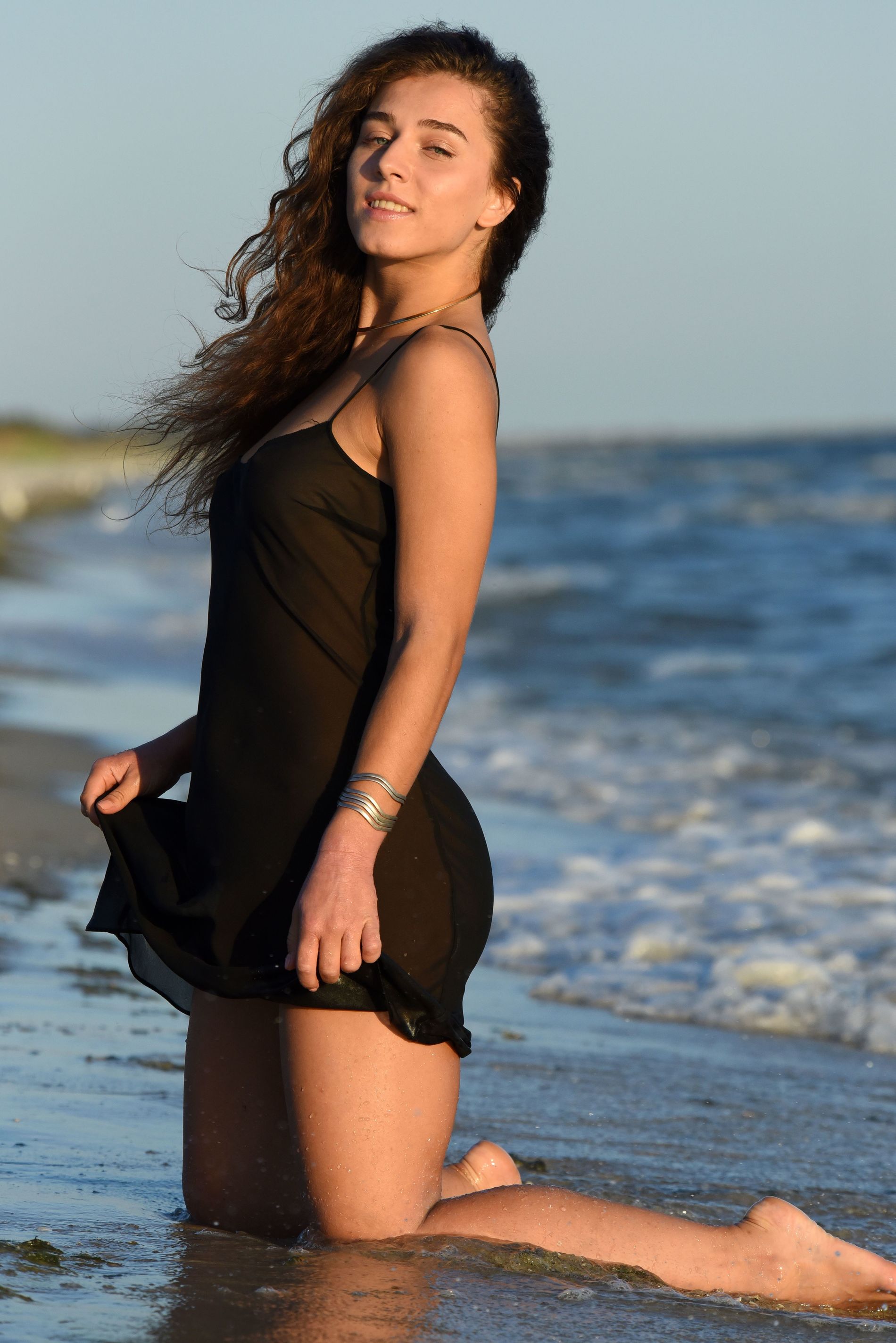 Модель Kailyn позирует на море