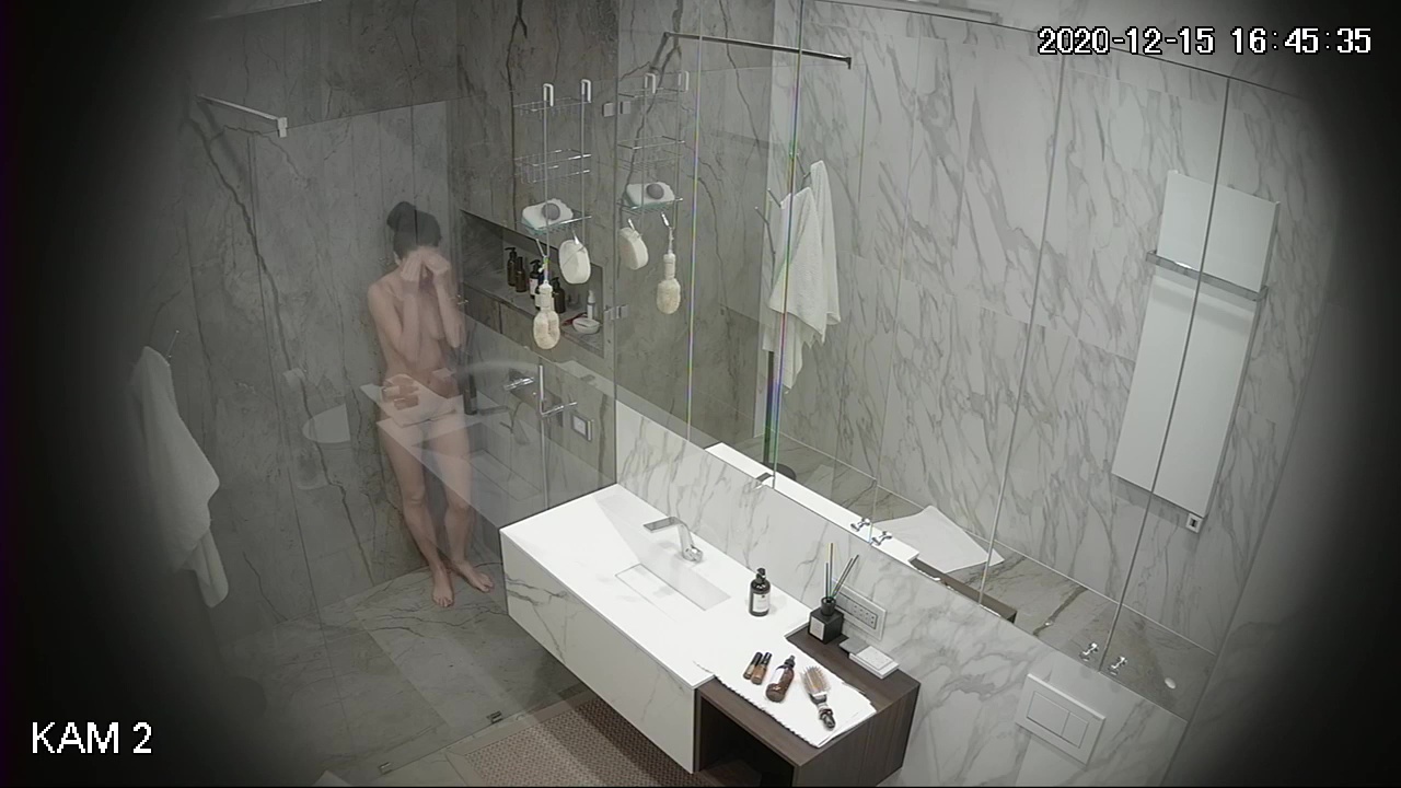 Шикарная душевая комната, эффектная худенькая девочка - моется, бреется, наводит красоту... Все здорово - и все это снято на камеру наблюдения. Любителям подсматривать посвящается. А девочка такая неплохая очень даже. Не так ли?