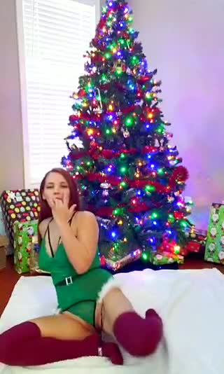 Девка в бельё а-ля "эльф" ублажает свою красоту,на фоне ёлки,конфетой!