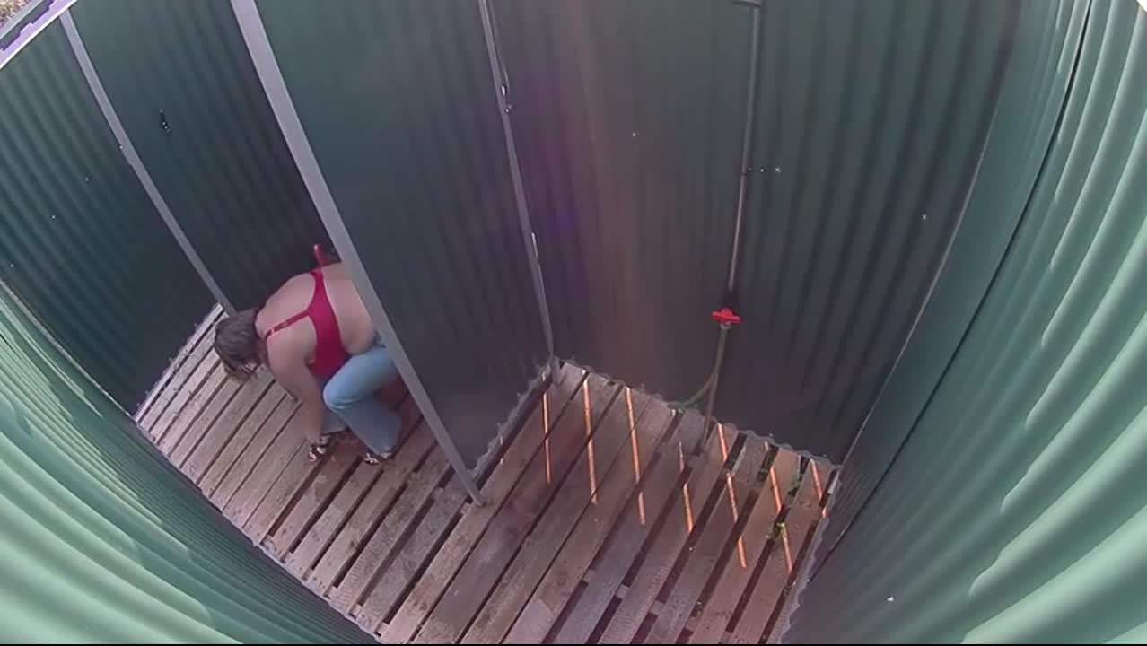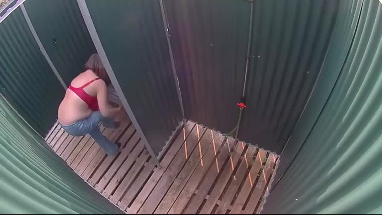 Пышная дамочка в возрасте подбривает свою пизду в кабинке для переодевания