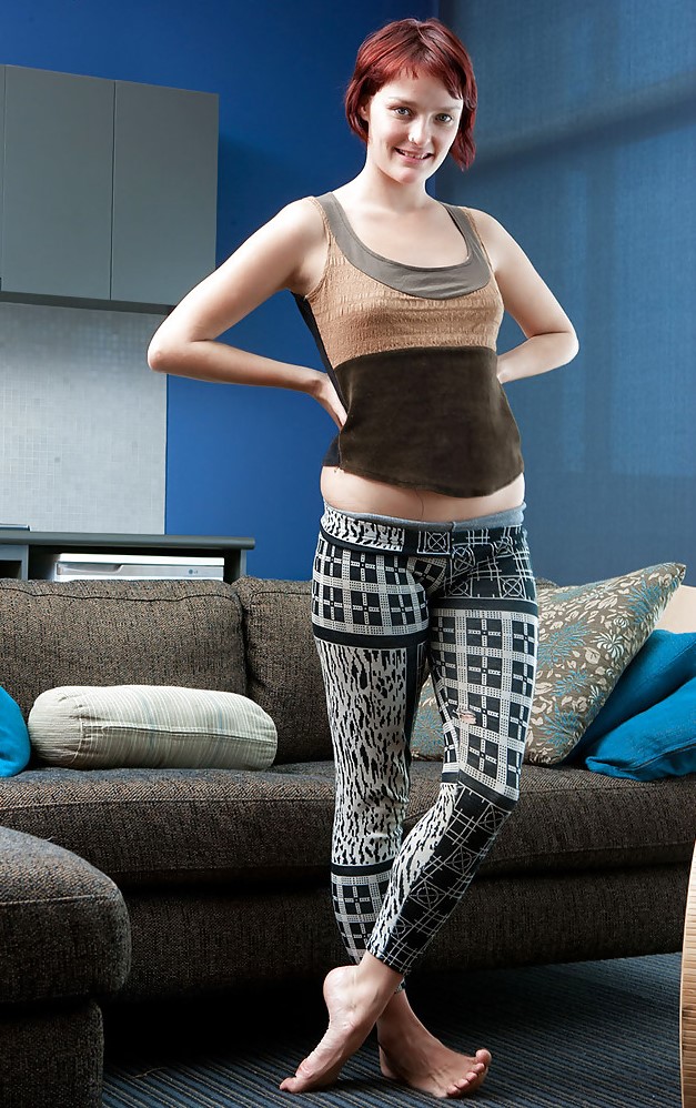 Катарина с маленькой грудью снимает штаны и трусики, чтобы показать мохнатую киску