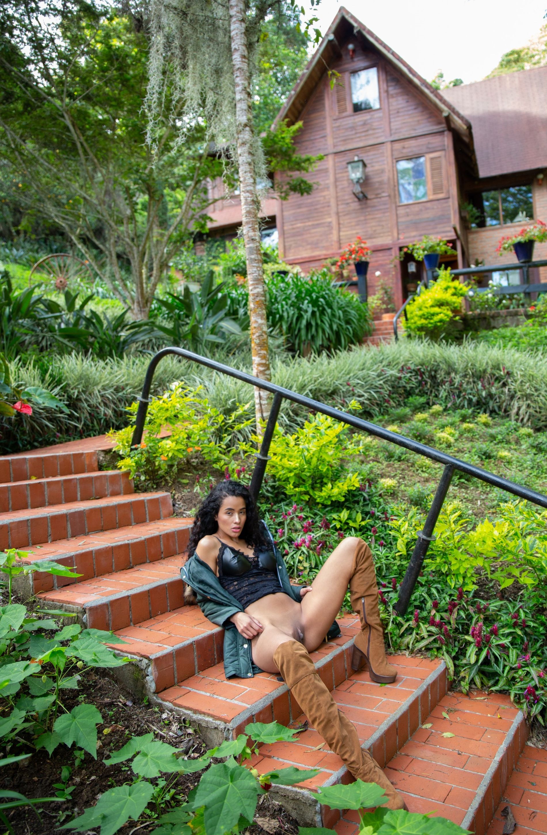 Симпатичная колумбийка очень сексуально позирует в саду!