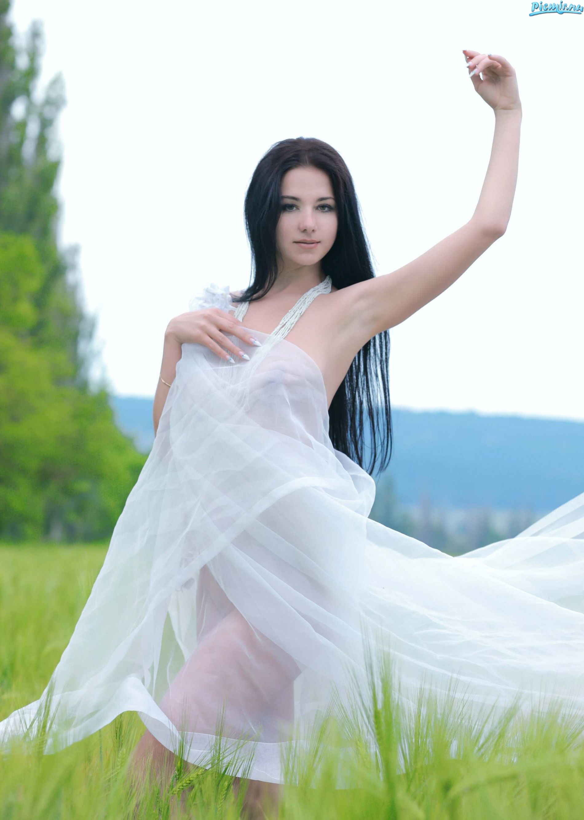 Красива брюнетка и голой и в своей прозрачной белой вуали!