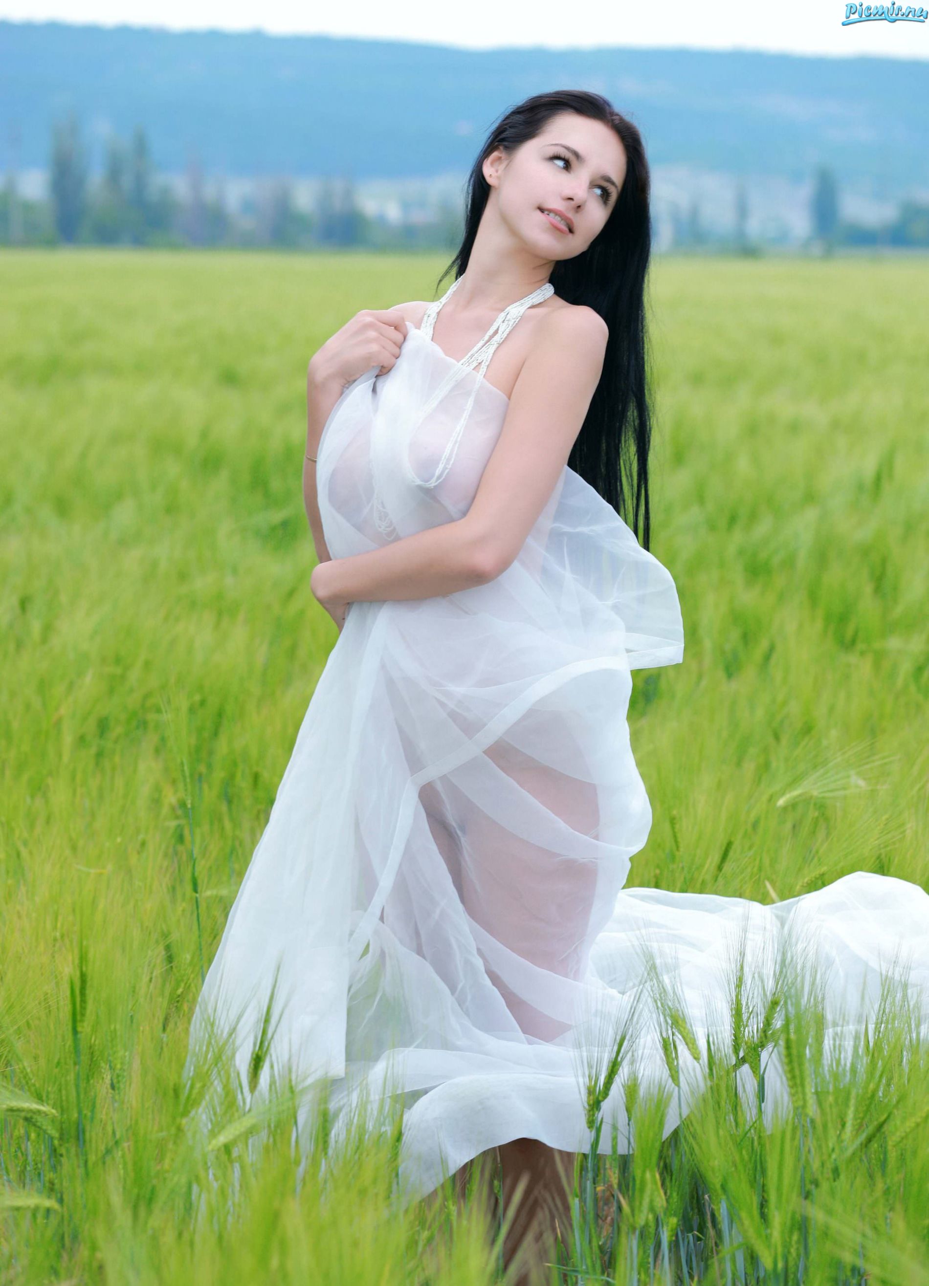 В этом поле она, как сбежавшая невеста в этой прозрачной белой накидке.