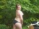 милашка попозировала на природе и под навесом на скамейке.