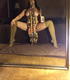 позирует перед зеркалом демонстрируя своё великолепное тело и фотографируя себя сама