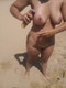 Женщина продолжает нежится под ласковым солнышком раскинув пышные телеса